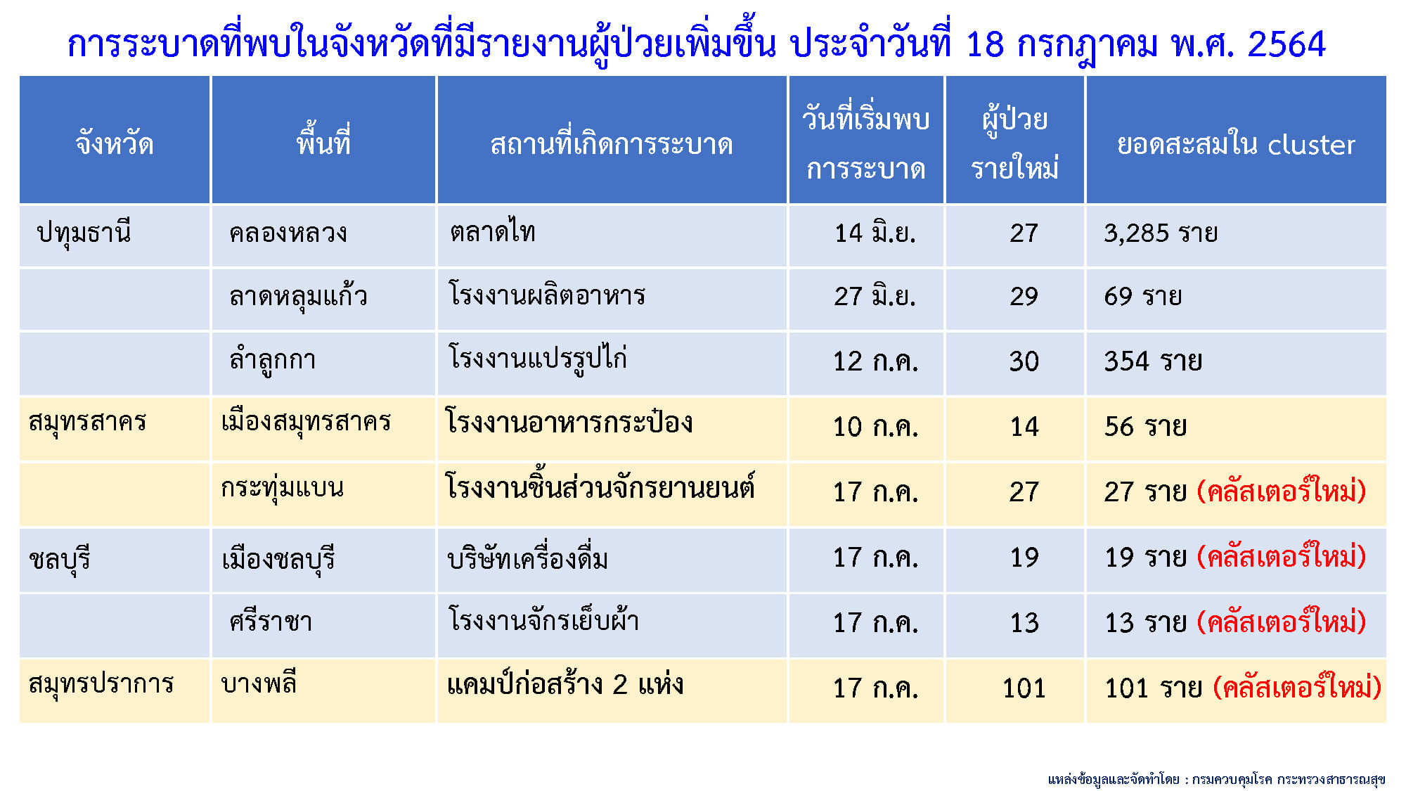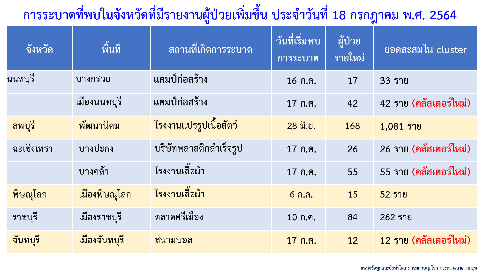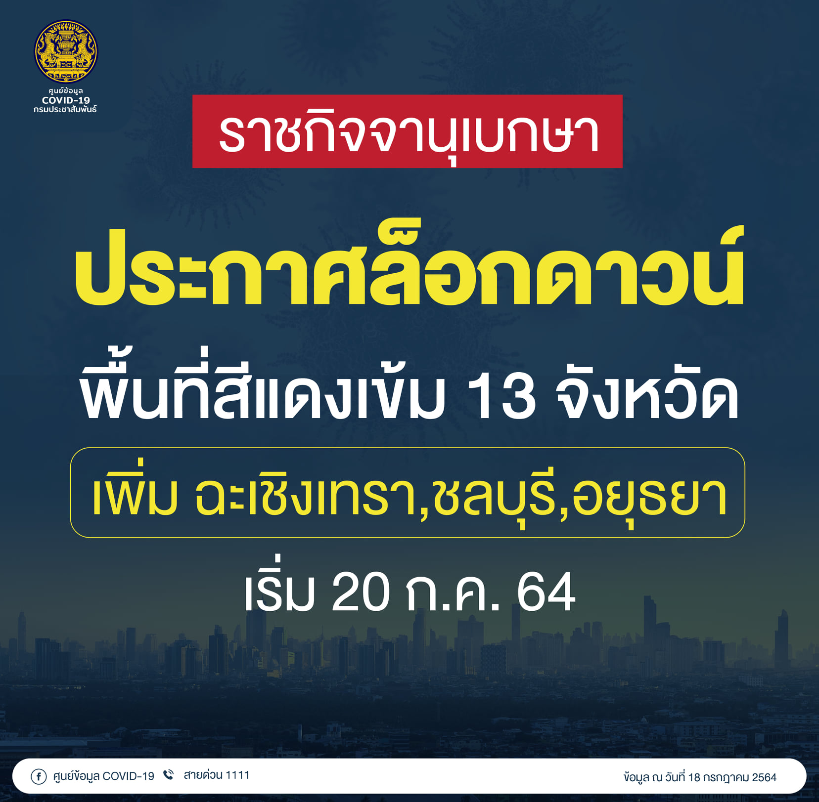 เพิ่ม ฉะเชิงเทรา ชลบุรี พระนครศรีอยุธยา เริ่ม 20 ก.ค. 64