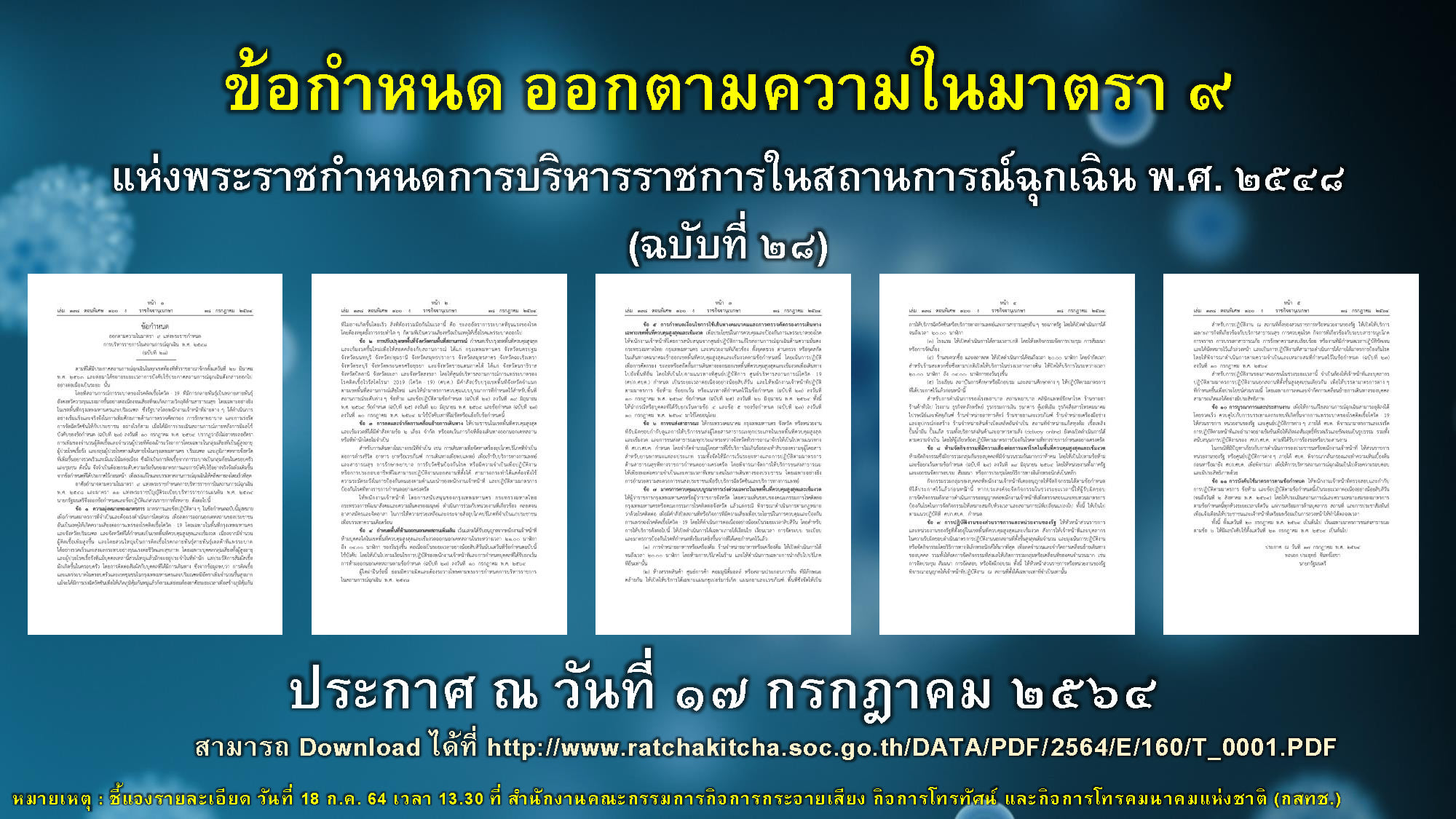 ดาวน์โหลดเอกสารได้ที่ http://www.ratchakitcha.soc.go.th/DATA/PDF/2564/E/160/T_0001.PDF