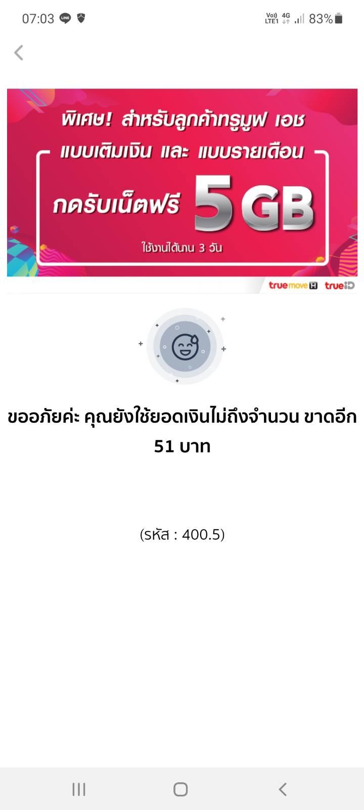 คุณใช้ยอดเงินไม่ถึงจำนวนขาดอีก 51 บาท