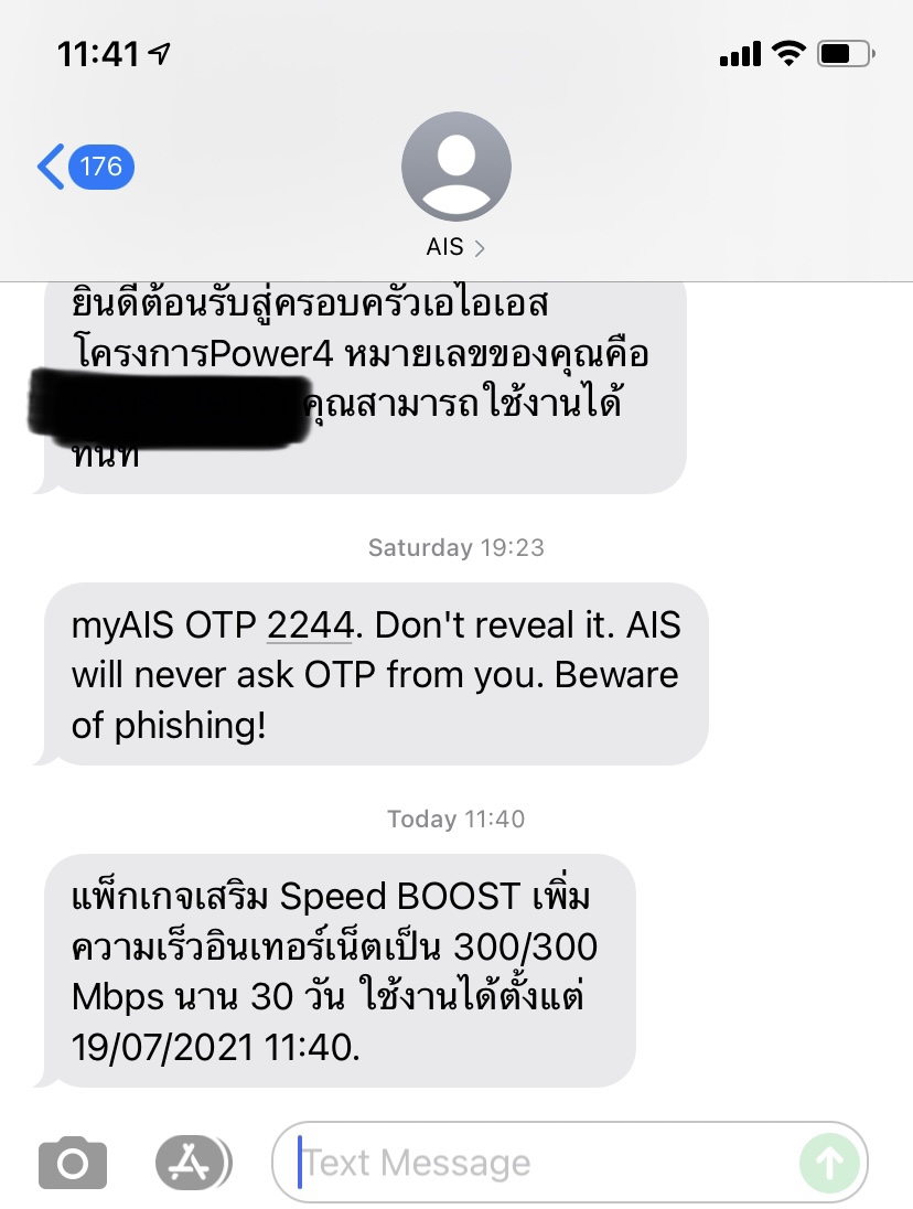 Ais fibre เชคให้หน่อยค่ะ เราได้รับข้อความนี้แต่ไม่ได้สมัครแพคเกตเสริมใดๆ
