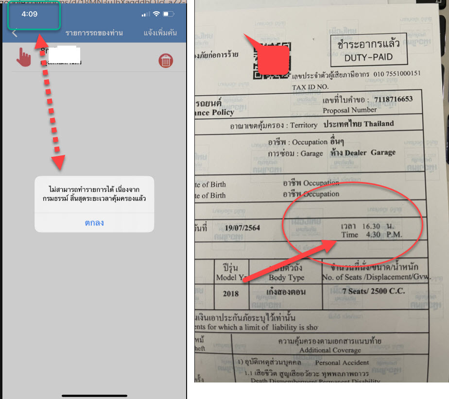 วันนี้จะสิ้นสุดประกัน ก็เลยจะเคลมเข้าไปที่ application ของบริษัทประกันตอน 16.09 น. แต่มีข้อความแจ้งมาว่า สิ้นสุดการรับประกันแล้ว ก็เลยไปดูที่กรมธรรม์ ในกรมธรรม์แจ้งว่าสิ้นสุดเวลา 16.30 น. มีใครเคยเจอแคสแบบนี้บ้างครับ