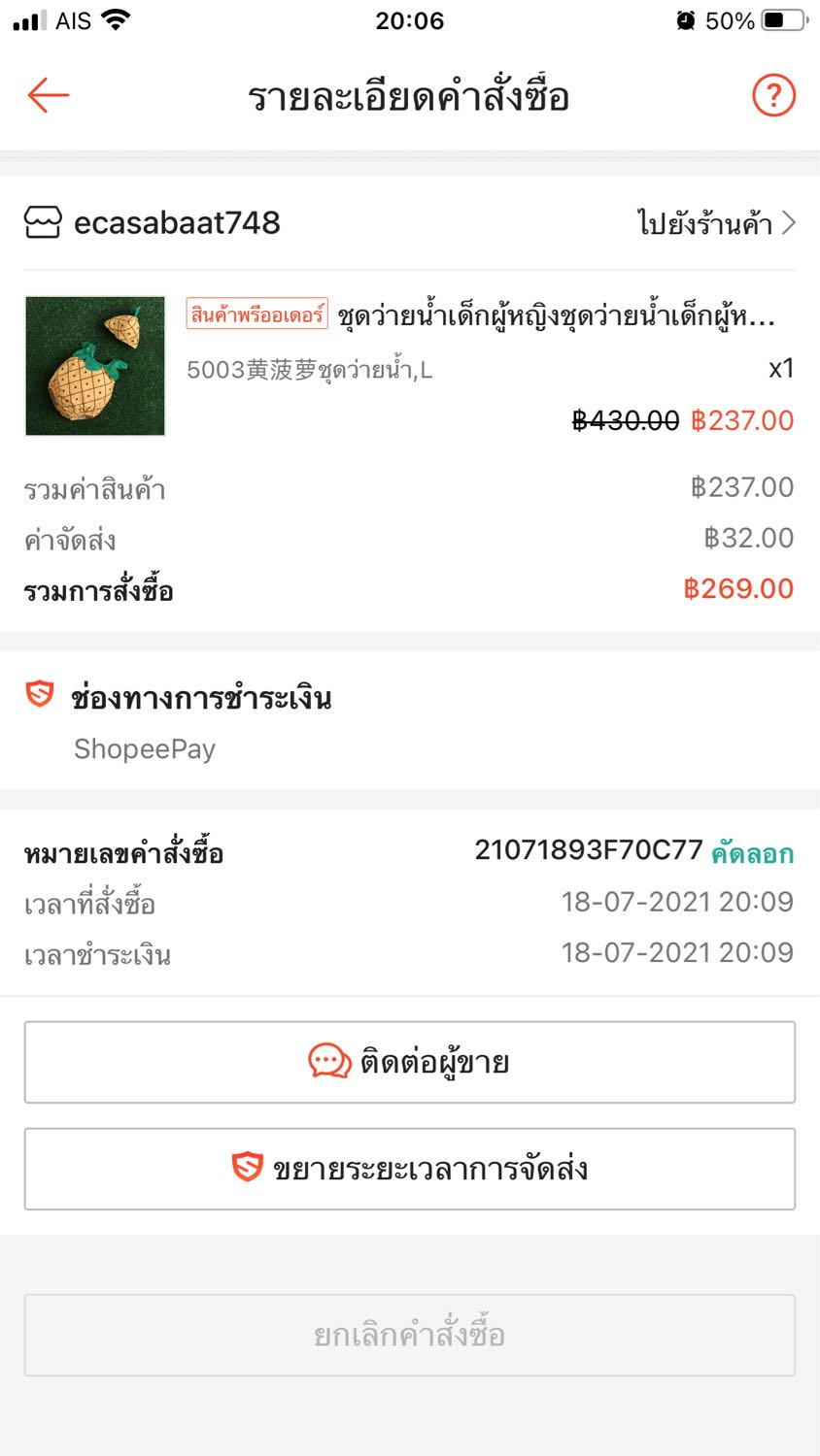 ยกเลิกคำสั่งซื้อ Shopee ไม่ได้
