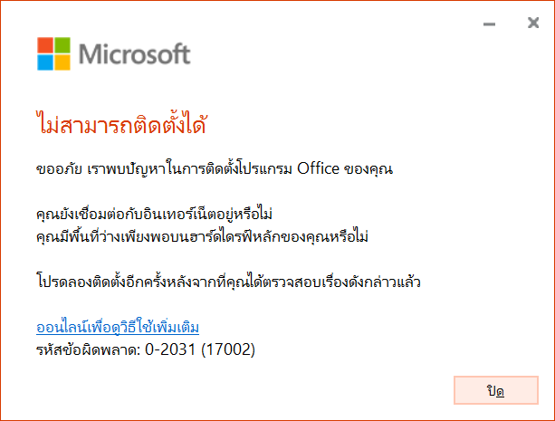 ติดตั้ง Microsoft365 ไม่ได้ค่ะรบกวนสอบถามผู้รู้ทีนะคะ