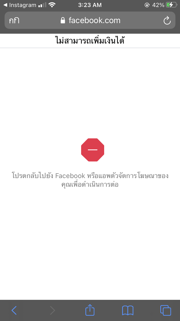 ยิง Ads บนไอจีไม่ได้ โดยที่เติมเงินเข้าไปแล้วแต่มันเด้งมาให้เติมเงินอีกรอบ