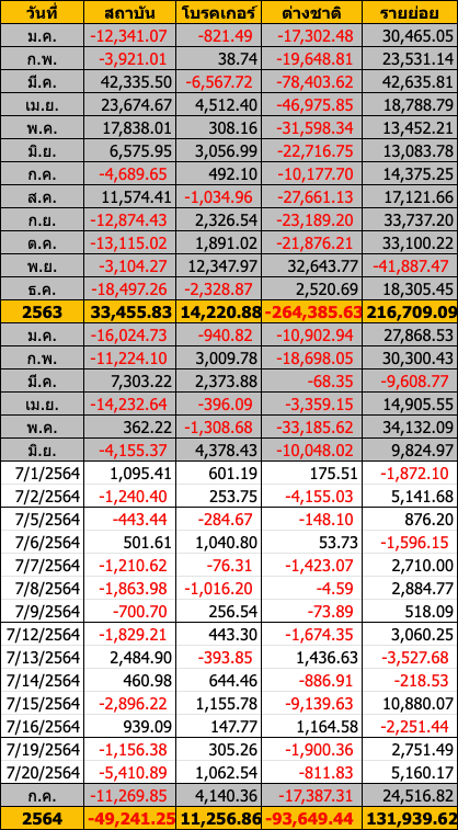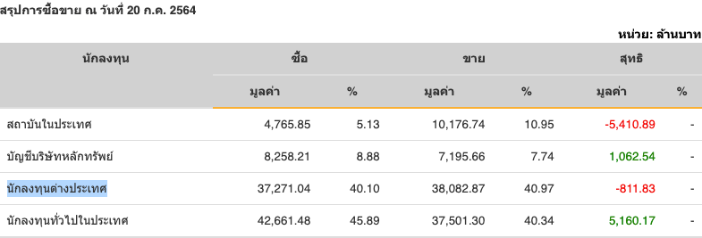 Sinthorn Summary : 20/7/2564 : ต่างชาติขายสุทธิ -811.83 ลบ.