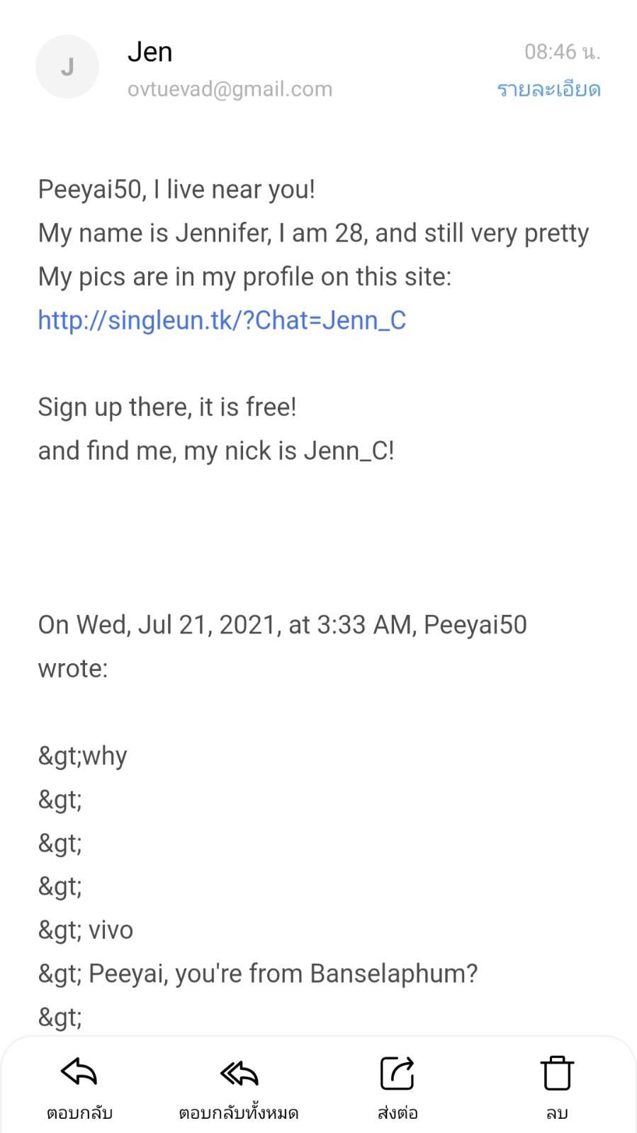 ต้องบอกก่อนว่านี่ไม่ใช่ครั้งเเรกค่ะเคยมีคนทักมาหลายคนเเล้ว ด้วยความที่อยากรู้เราก็คุยกับมันค่ะ บางคนก็คุยดีเเต่เราบล็อคก่อนกลัว บางคนก็ทักมาดีจู่ๆก็มาบอกว่าอีเมลเราเป็นของมันตอนนั้นก็รีบบล็อคมันเลยค่ะ