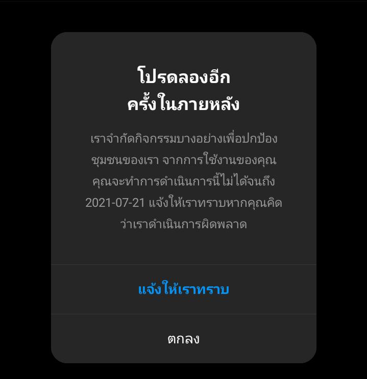 ไอจีมันขึ้นว่าโดนจำกัดกิจกรรมบางอย่างอะค่ะ ทำไงดีคะ