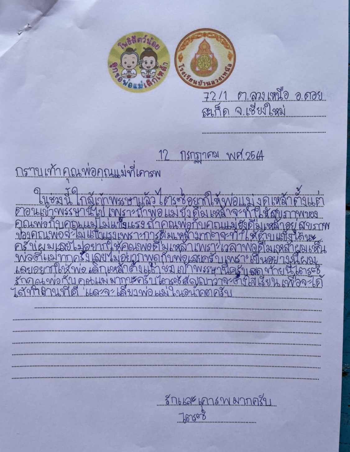 จดหมายที่น้องไตรซ์เขียนให้พ่อแม่