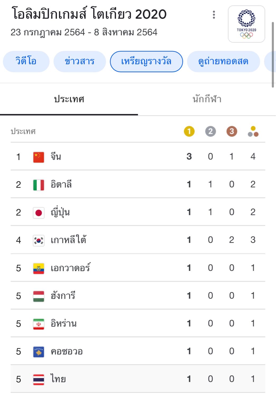 ดีใจมากกกกก น้องเทนนิส ทำให้ไทยได้อยู่อันดับ 5 ร่วม ตั้งแต่ชิงเหรียญวันแรกเลย