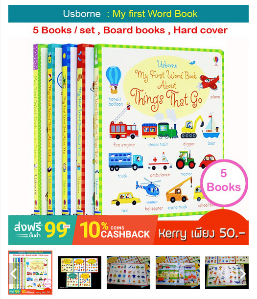 11. บอร์ดบุ๊คเล่มใหญ่ สำหรับเรียนรู้คำศัพท์ของเด็กๆ Usborne : My First Word Book : 5 books/set 890.- https://shp.ee/cpvm9x3