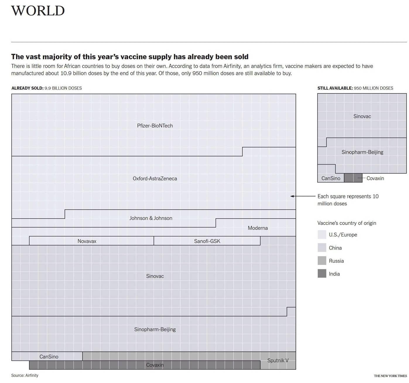 NYtimes บอกว่าพวก Sinovac, Sinopharm เหลือแยะมากซื้อได้ตลอดเลยเกือบ ๆ 1 พันล้านโดส