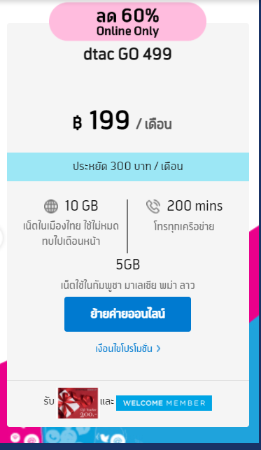 ปัจจุบันใช้ค่ายเขียวแต่เน็ตแย่ลงมาก สอบถามพนักงานแล้วไม่มีโปรที่ดีกว่าโปรที่ใช้อยู่ เพิ่งไปเจอโปรรายเดือนราคา 299 ของ GOMO ที่ถูกกว่าและการใช้งานค่อนข้างคล้ายเด