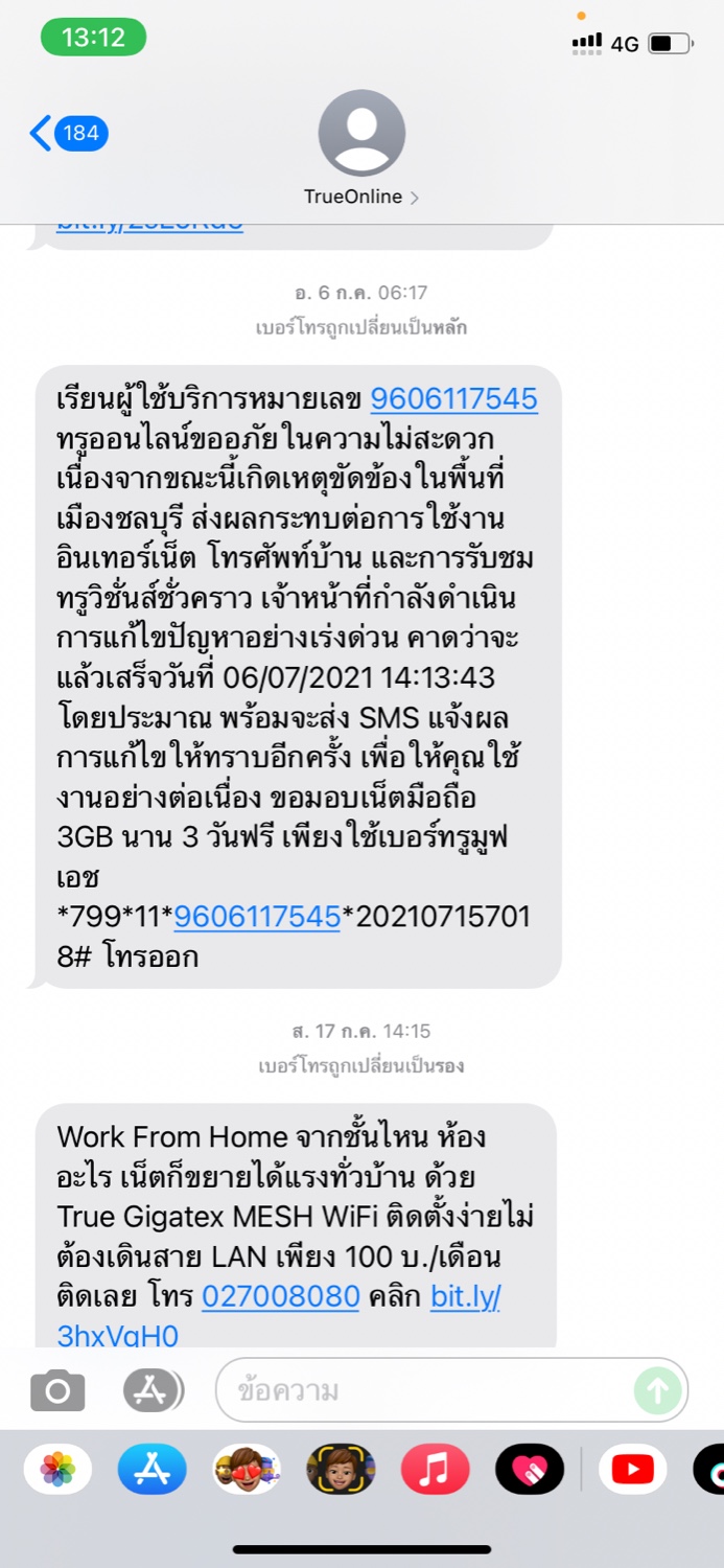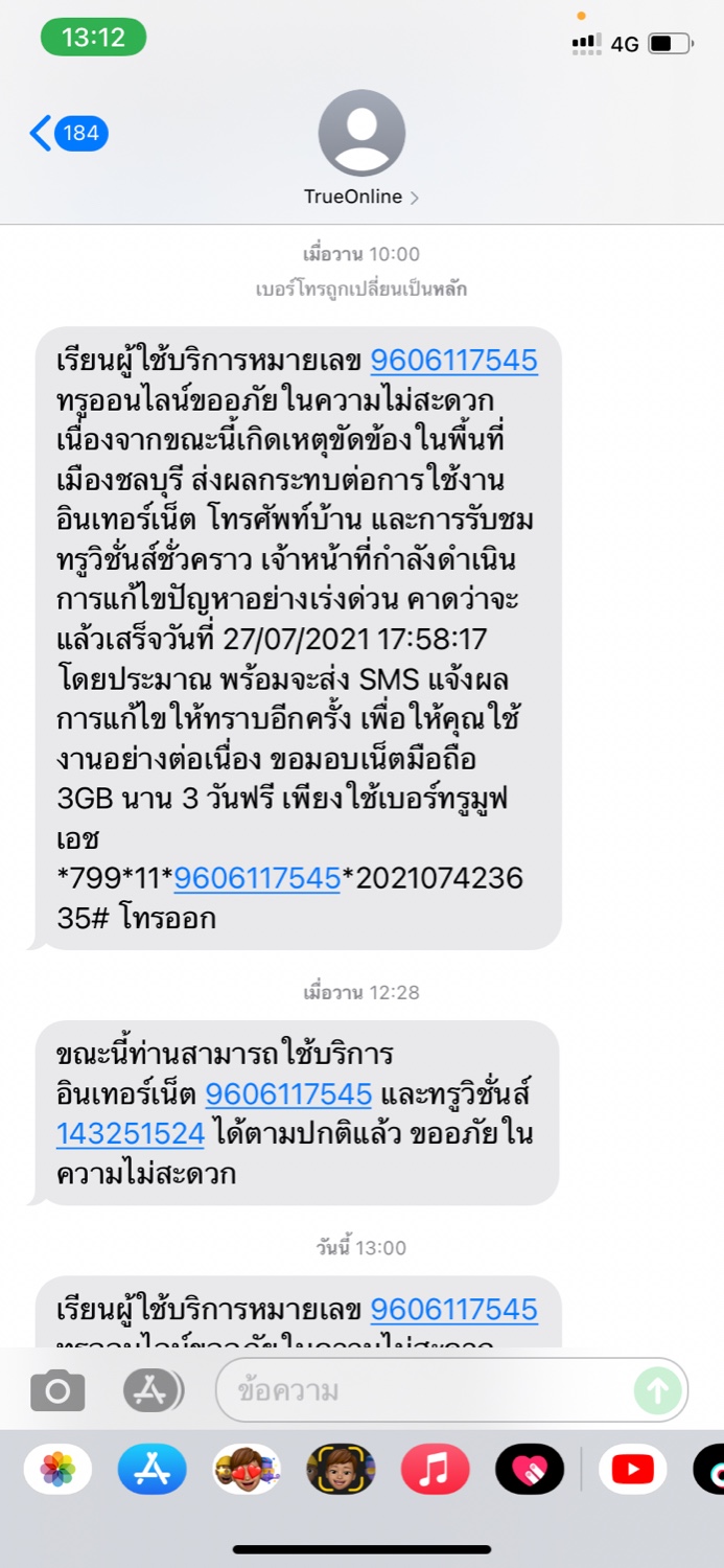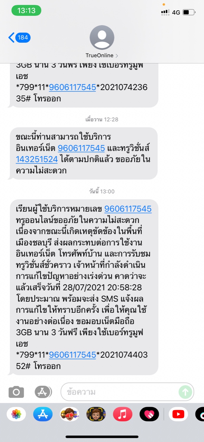 True Internet sms มาแจ้ง Net จะใช้ไม่ได้ถึง 5 โมง ห่วยแตก เป็นแบบนี้มากี่ครั้งแล้ว