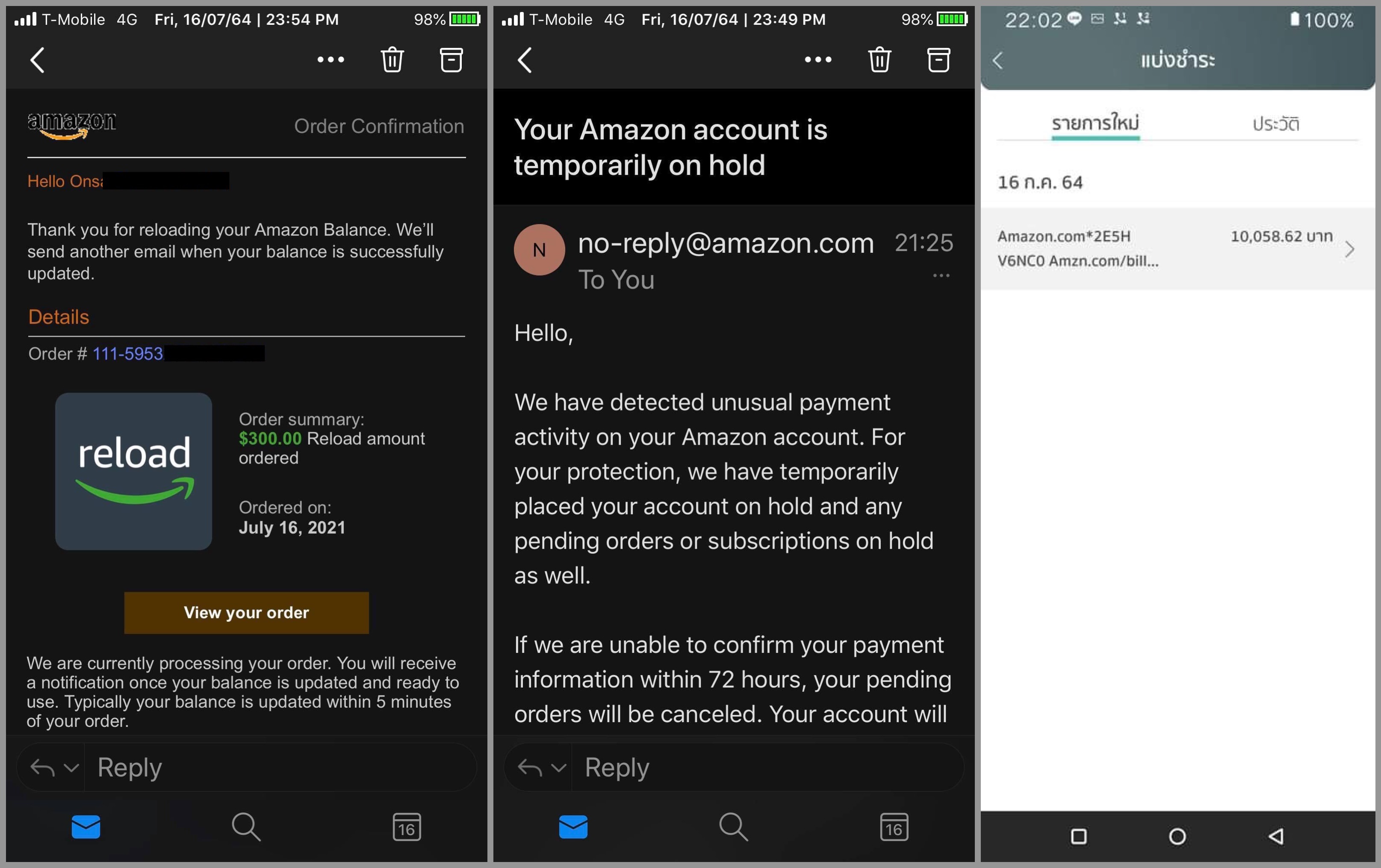 หลังจากตัดเงิน Amazon ก็ทำการล็อคบัญชีทันที