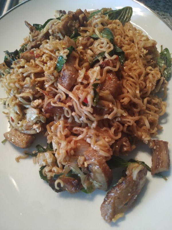 £££ เข้าสู่โหมดประหยัดเงินครับ มาม่าหมูย่างผัดโหระพา