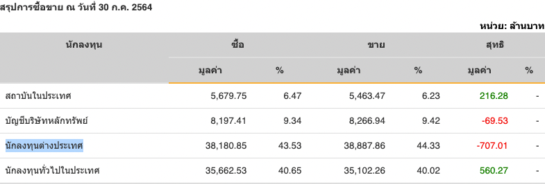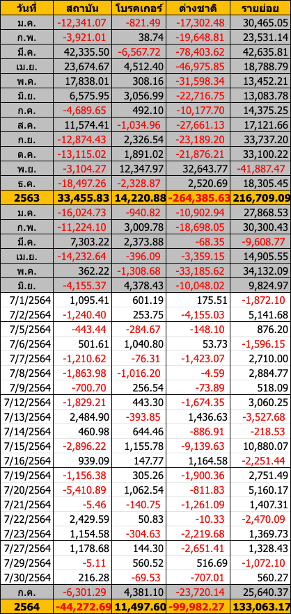 Sinthorn Summary : 30/7/2564 : ต่างชาติขายสุทธิ -707.01 ลบ.