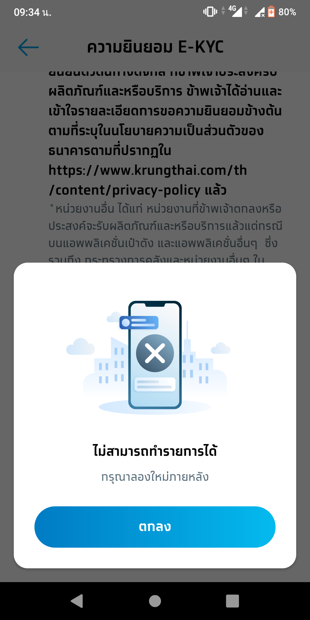 Krungthai NEXT ลงทะเบียนเข้าบัญชีไม่ได้