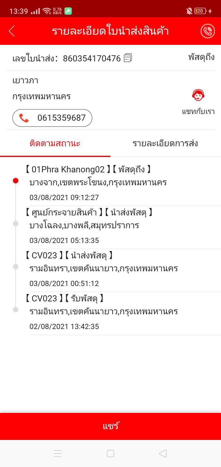 รบกวนเจแอนด์ทีส่งของให้วันนี้ด้วยค่ะ ระบบไม่อัพเดท tracking no.860354170476
