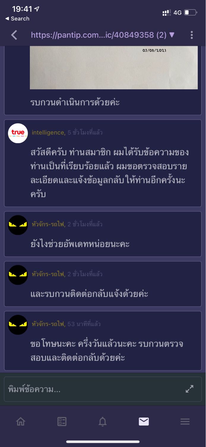 จนไปแจ้งอีกเบอร์ของ AIS ดำเนินการเรียบร้อยแล้ว แต่ True เงียบกริบครึ่งวัน สงสัยต้องยกเลิกเลยหรือเปล่า ถึงจะเร็ว