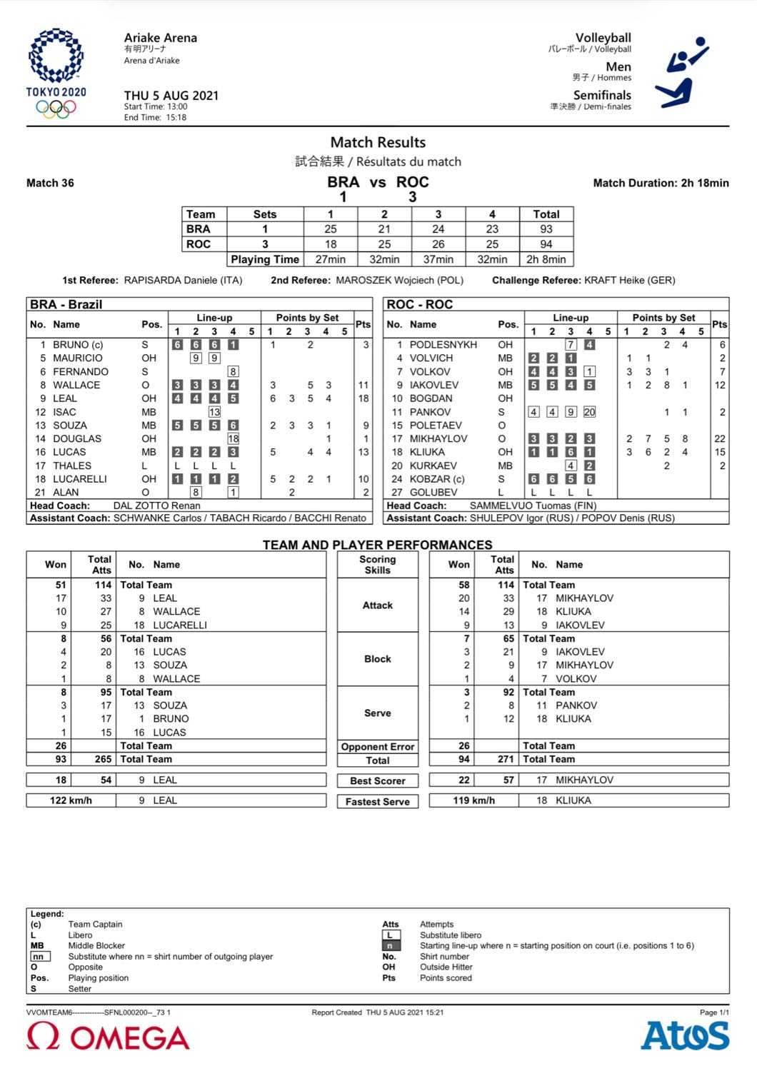 Brazil vs Russia ROC @ Volleyball Olympic Games ...1/2 finals.....who will win ...Aug. 5, 2021
