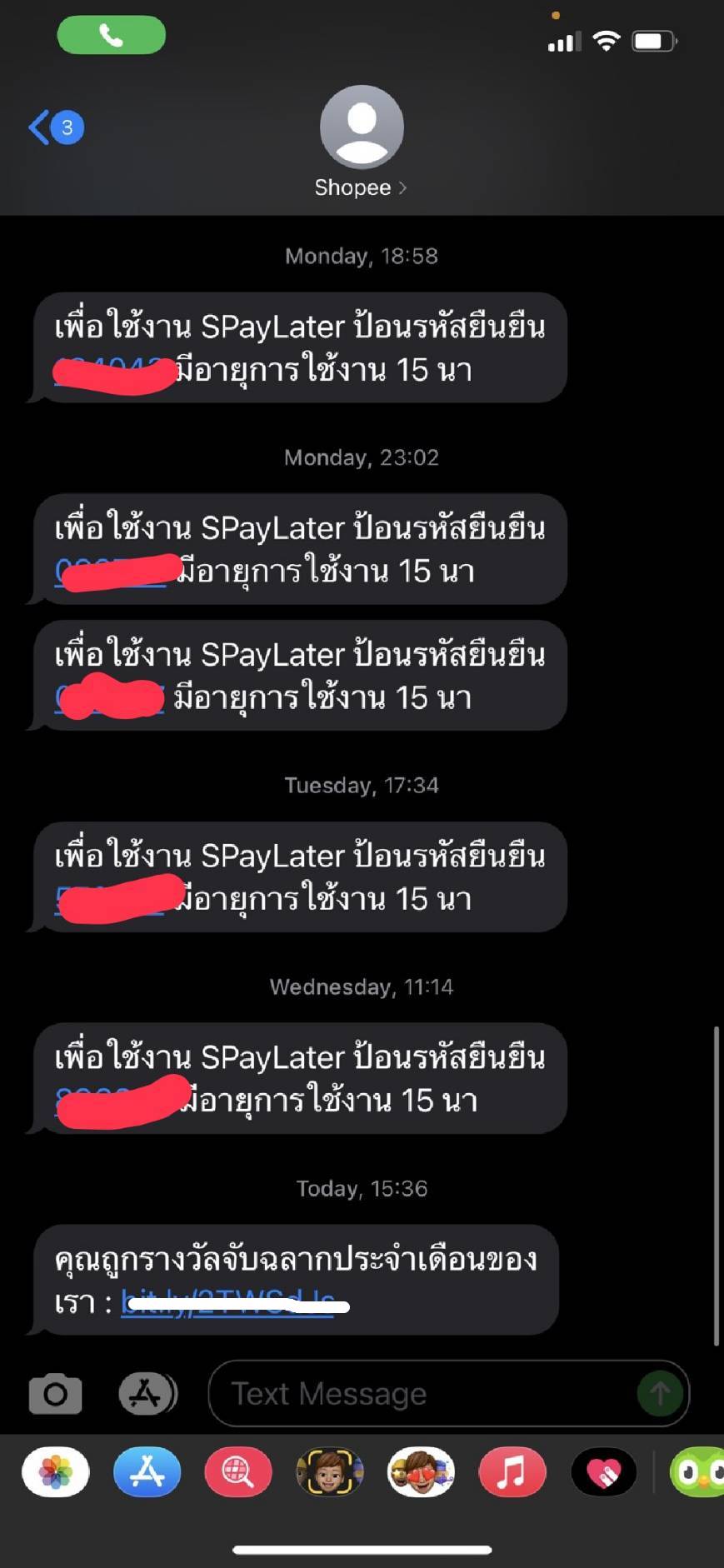 แต่ SMS นั้นเป็นของ Shopee เวลาส่ง OTP Spaylater อันนี้เชื่อถือได้ไหมครับ