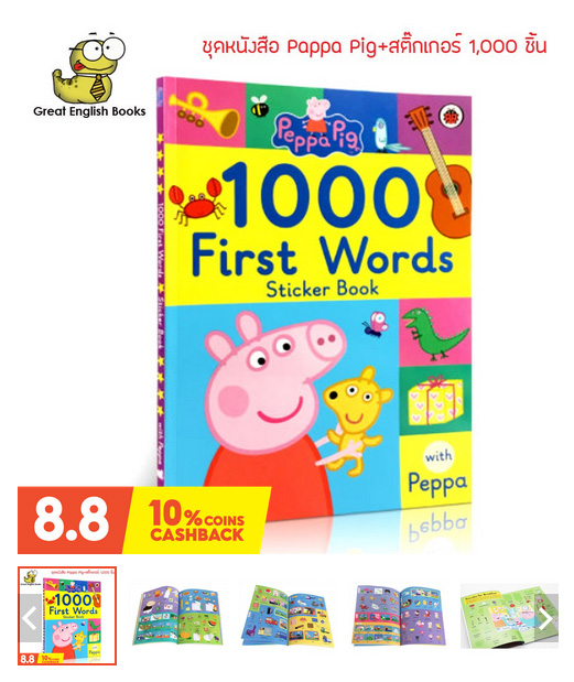 2. พร้อมส่ง ชุดคำศัพท์+สติ๊กเกอร์ Peppa Pig: 1000 First Words Sticker Book มี 64 หน้า Sticker 1,000 ชิ้น 350.-