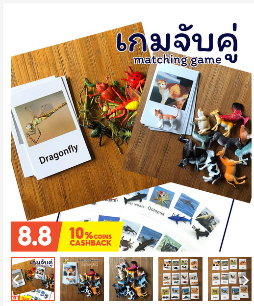 4. เกมจับคู่สัตว์ Matching Animals การ์ดภาพสัตว์ 12 ใบ โมเดลสัตว์ 12 ตัว150.- https://shp.ee/i54r4g2