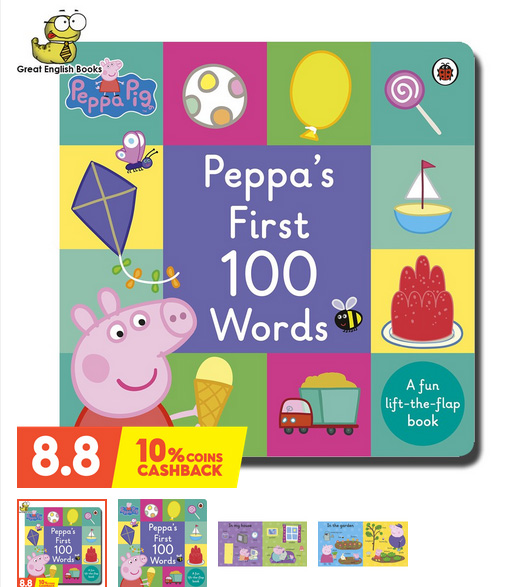 1. พร้อมส่ง *ลิขสิทธิ์แท้* หนังสือบอร์ดบุ๊ค Peppa Pig Peppas First 100 Words Board book 25.5 x 25.9 cm. 350.-