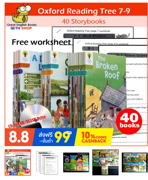 9. พร้อมส่ง หนังสือฝึกอ่านภาษาอังกฤษ 40 เล่ม Oxford Reading Tree Biff Chip Kipper Level 7-9 + ฟรี mp3 +Worksheet 1,100.-