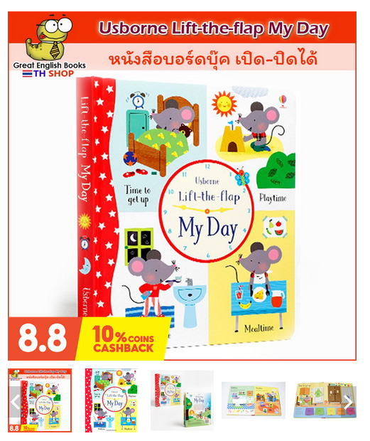 12. พร้อมส่ง หนังสือบอร์ดบุ๊ค Usborne Lift-the-flap My Day หนังสือเด็ก 290.-