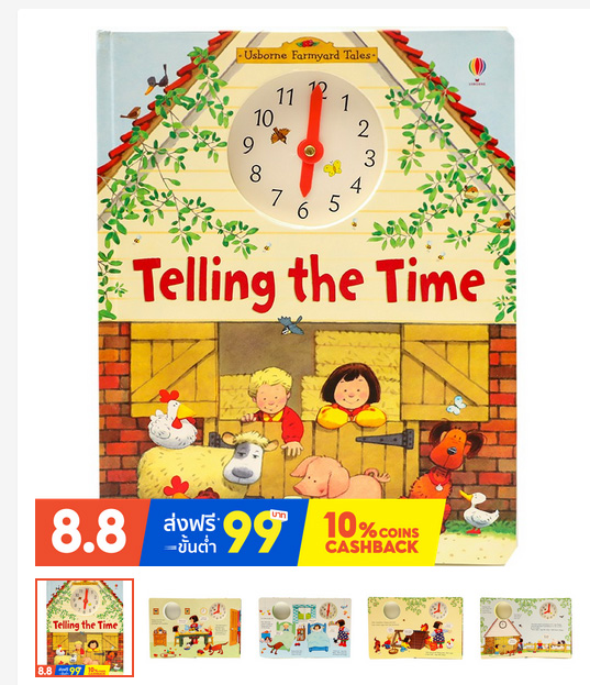 11. บอร์ดบุ๊คเรียนรู้เรื่องเวลา Usborne Farmyard Tales Telling The Time เล่มใหญ่ Clock ขนาด 22*28.5cm. 260.- https://shp.ee/aenypdy