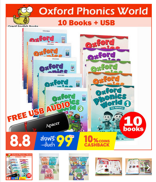 7. *พร้อมส่ง ฟรี USB/CD แบบฝึกหัดOxford Phonics World 10 เล่ม + CD 10 แผ่น Level 1-5 สำหรับน้องๆวัยประถมนะคะ 990-