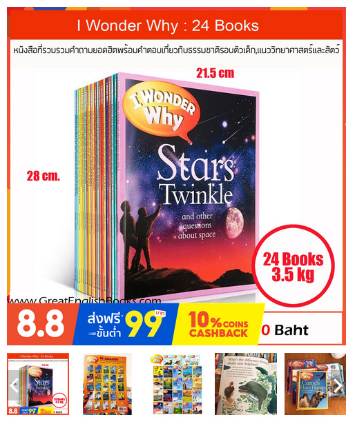 5. I Wonder Why 24 Books หนังสือที่รวบรวมคำถามยอดฮิตพร้อมคำตอบของเด็กๆ เป็นเรื่องราวเกี่ยวกับธรรมชาติ 990.- https://shp.ee/d2jkn8w
