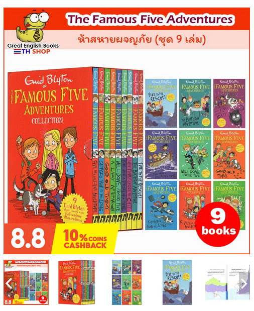 6. พร้อมส่ง หนังสือภาษาอังกฤษ The Famous Five Stories by Enid Blyton ห้าสหายผจญภัย (ชุด 9 เล่ม) 850.-