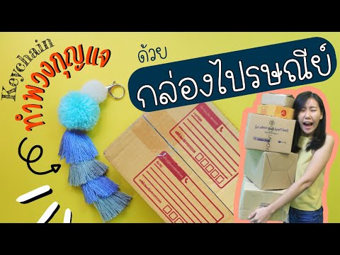 Easy DIY a Pom Pom Tassel Keychain with Cardboard : ทำพวงกุญแจปอมปอมและพู่ง่ายๆ ด้วยกล่องไปรษณีย์
