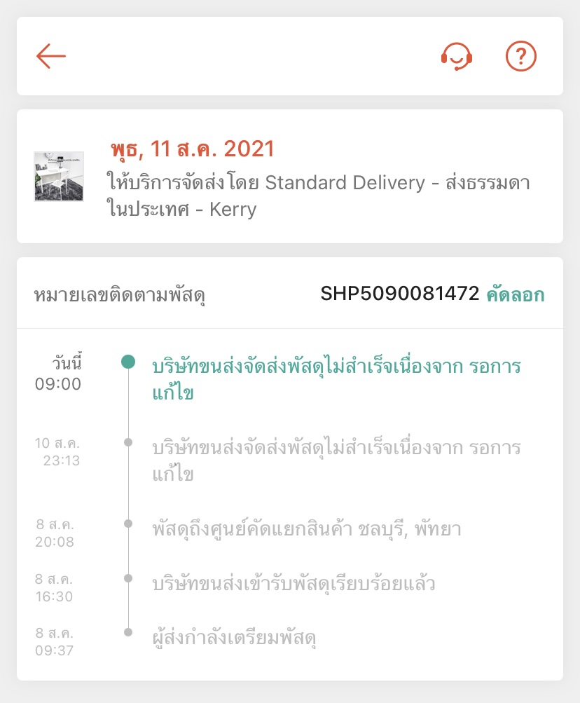 ...เนื่องด้วยผมสั่งของผ่านแอพส้ม ผู้ขายได้ทำการส่งสินค้าด้วยขนส่งสีส้ม มีรายละเอียดคือ 14 เมษา 09:58 ผู้ขายส่งสินค้าที่ดินแดง 15 เมษา 07:51 สินค้าไปอยู่ศูนย์กระจายที่สมุทรสาคร 16 เ