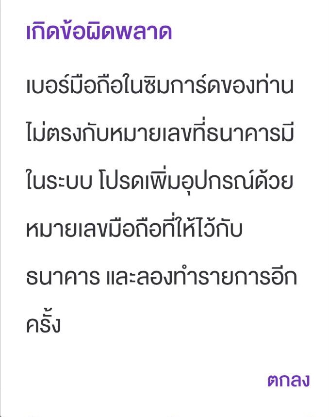 ขออนุญาตสอบถามเพิ่มเติมค่ะ ไม่ทราบว่าท่านใช้งานมากกว่า 1 ซิมการ์ดในเครื่องหรือไม่ หากใช่ แนะนำถอดซิมที่ไม่ใช่หมายเลขลงทะเบียนไว้กับธนาคารออกก่อน หลังจากทำรายการเรียบร้อย ท่านสามารถใช้งาน 2 ซิมการ์ดได้ตามปกติค่ะ