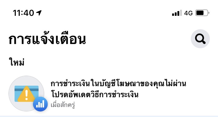 ทไอย่างไรเมื่อFacebook แจ้งเตือน การชำระเงินโฆษณาในบัญชีของคุณไม่ผ่าน โปรดอัพเดทวิธีการชำระเงิน