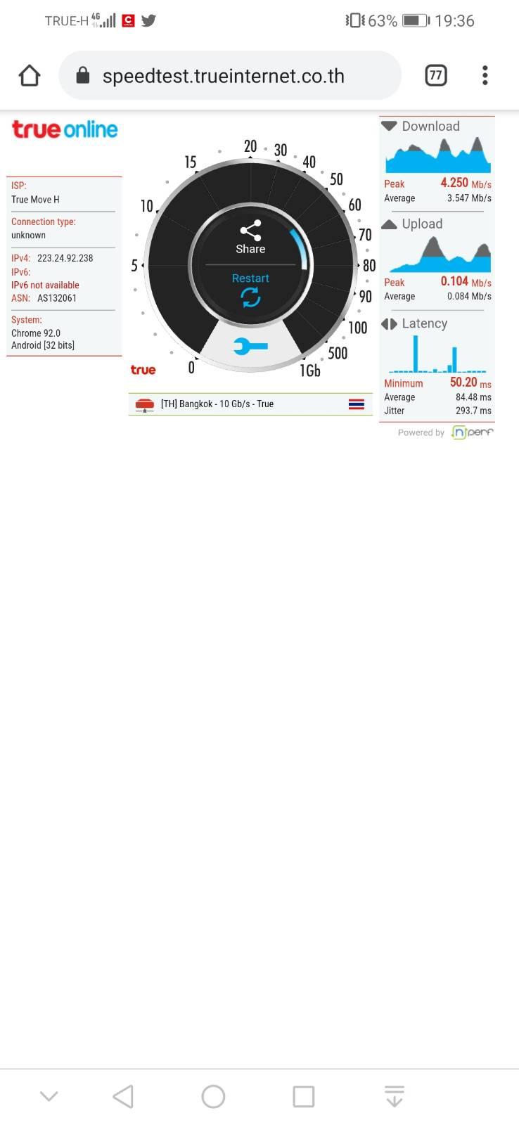 กะจะเอามาโหลด เกม TOS เนื่องจากเน็ตที่หอ มันช้าเต่าคลานมาก ผมเลยตัดสินใจไปซื้อเน็ต ของ True มาเห็นว่า ได้สูงสุด 200 Mbps ในใจก็รู้ยังไงก็ไม่น่าจะได้ถึงแต่ขอให้มากกว่า 10Mbps ก็ยังดี สรุป .... ช้าเป็นเ