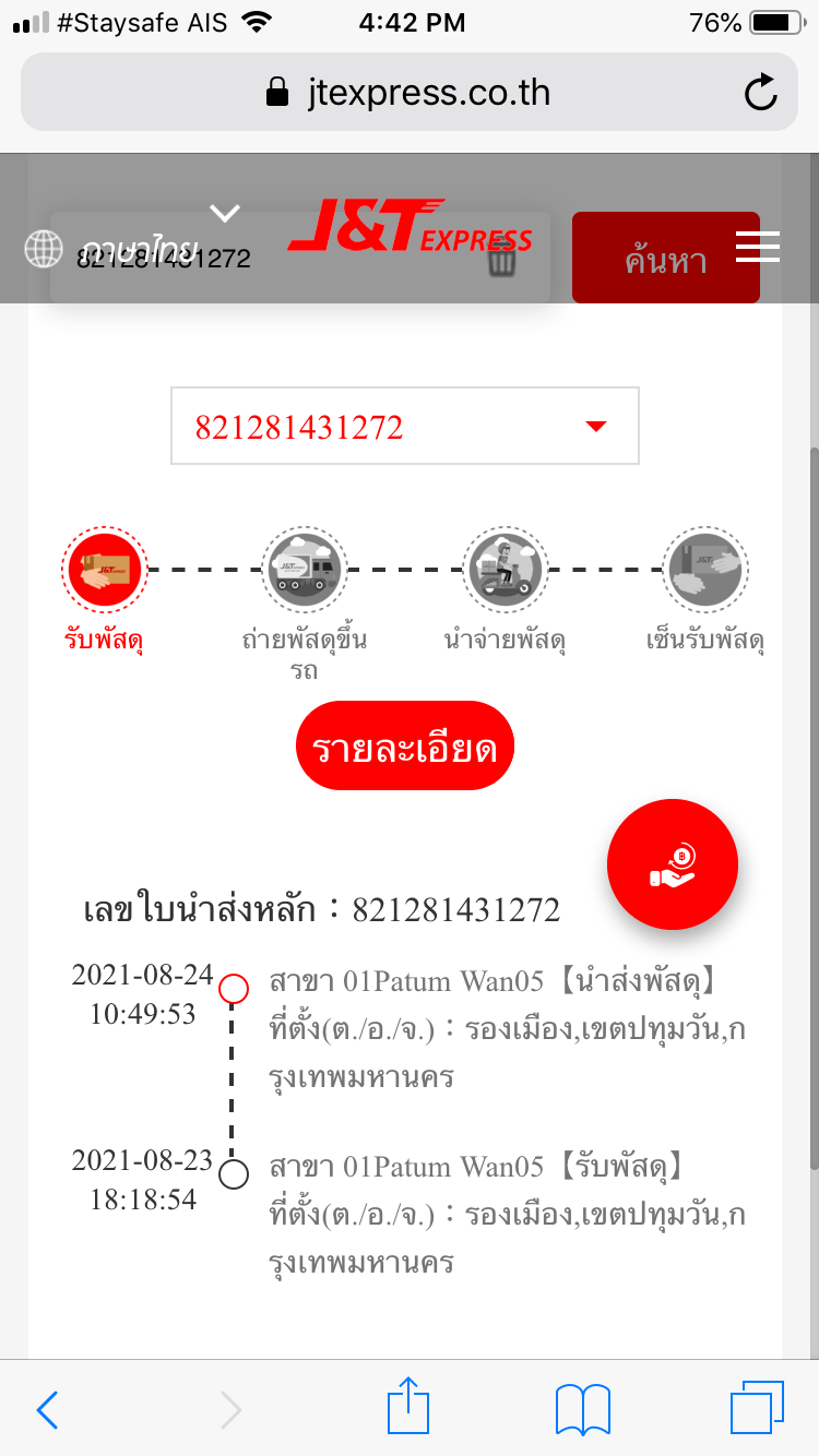 ติดตามพัสดุj&tของไม่ขยับเลย