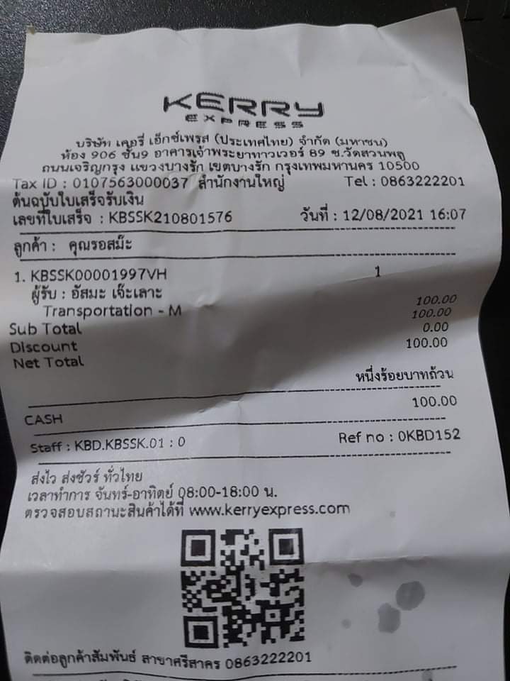 พอดีผมได้สั่งสินค้าจากร้านค้าแห่งหนึ่งในตัวของสมุทรสาคร ระยะทางของร้านกับที่อยู่ของผมห่าวกันประมาณ 9.5กิโลเมตร ผมสั่งสินค้าจากร้านวันที่18/08/64 ทางร้านจัดสั่งสินค้าให้วันที่ 19/08/64 เคอรรี่มารับเอา