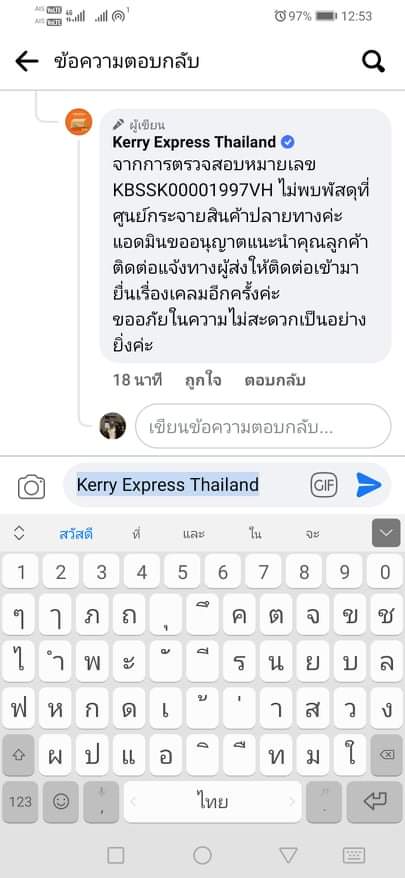 เคอรี่ให้คำตอบมาว่าไม่พบพัสดุ ตรวจสอบระบบล่าสุด 20:00 น. ระบบขึ้น