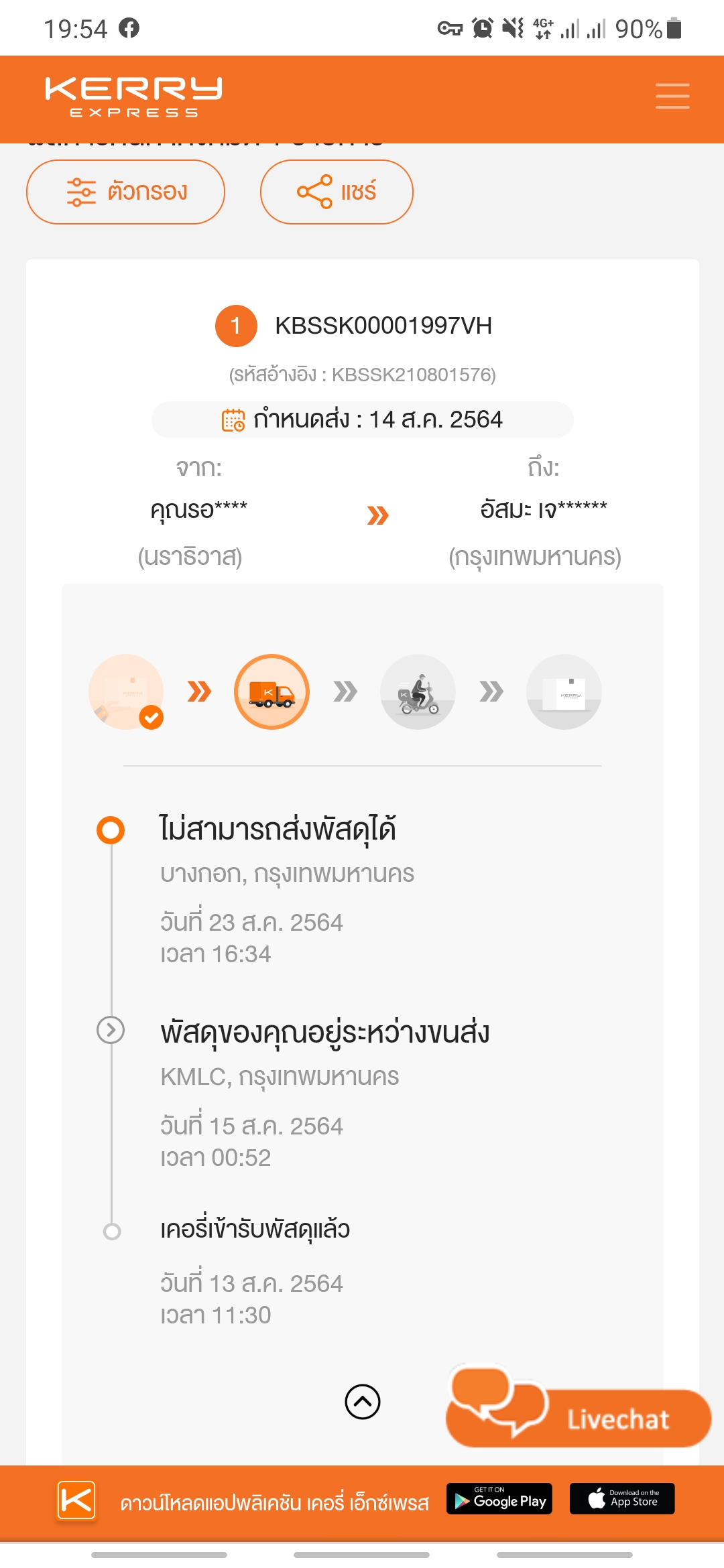kerry แจ้งว่า บริษัทขนส่งจัดส่งพัสดุไม่สำเร็จเนื่องจาก รอการแก้ไข หมายความว่ายังไง