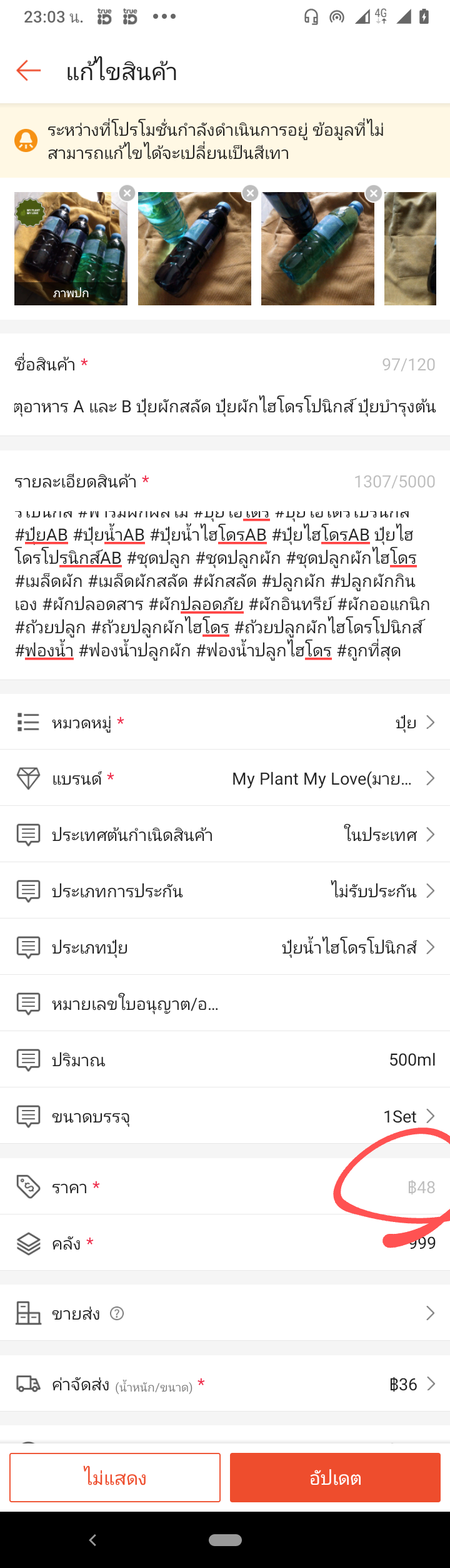 และแก้ไขราคาสินค้าจาก 48 บาทเป็น 69 บาท"
