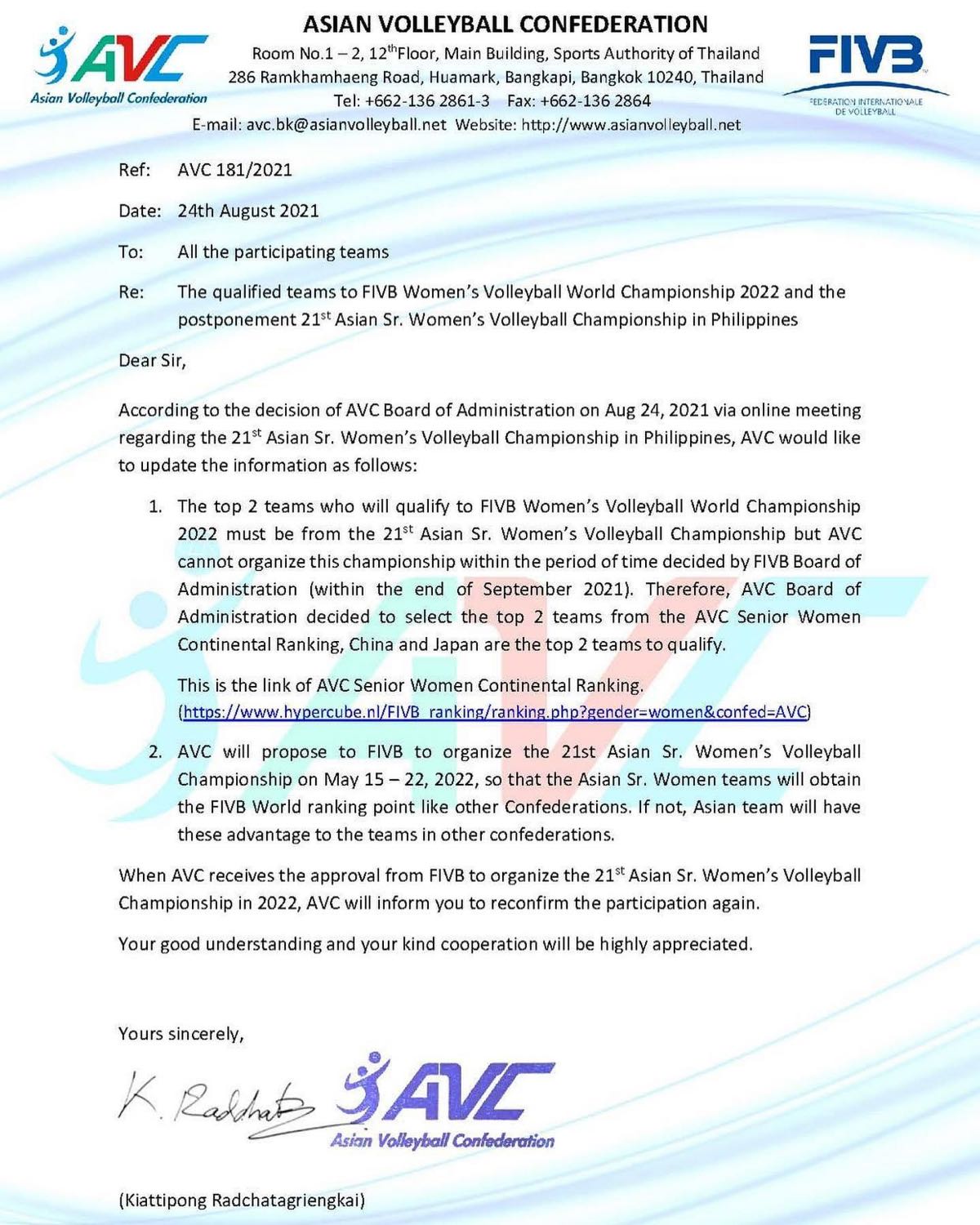 Official : AVC ยืนยัน จีนและญี่ปุ่น เข้าร่วม ชิงแชมป์โลก 2022