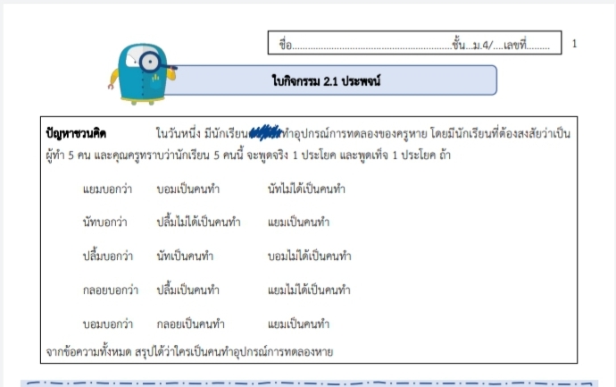 ไม่รู้อะไรเลย โจทย์ปริศนา คณิต.4