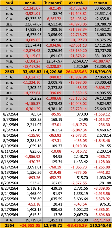 Sinthorn Summary : 30/8/2564 : ต่างชาติซื้อสุทธิ 2,067.70 ลบ.