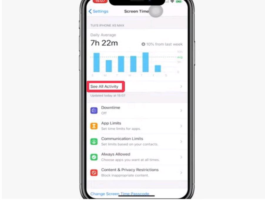 ✅ขั้นตอนที่ 2 เมื่อคุณคลิกเข้าไปที่ Screen Time หรือ เวลาหน้าจอ และให้คลิกที่คำว่า See All Activity หรือ ดูกิจกรรมทั้งหมด
