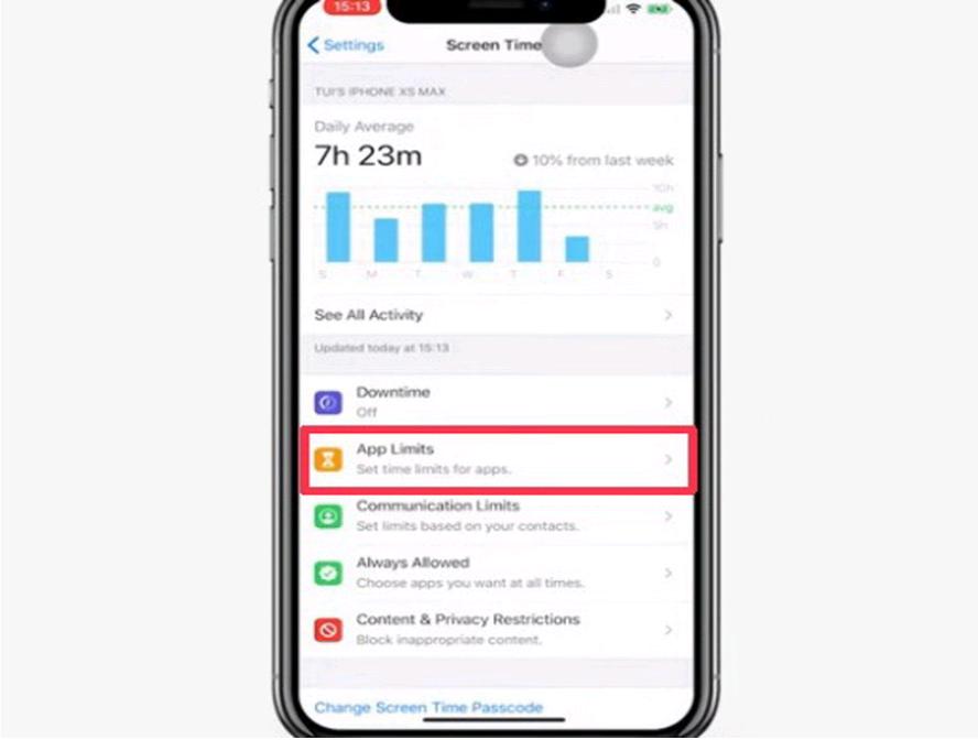 ✅ขั้นตอนที่ 4 เมื่อคุณรู้แล้วว่าระหว่างวันคุณเสียเวลาไปกับแพลตฟอร์มใดในมือถือแล้ว และคุณอยากจะจำกัดการเล่นมือถือ โดยการบล็อกแพลตฟอร์มนั้นคุณสามารถคลิกคำว่า App Limits หรือ การจำกัดการใช้แอพ