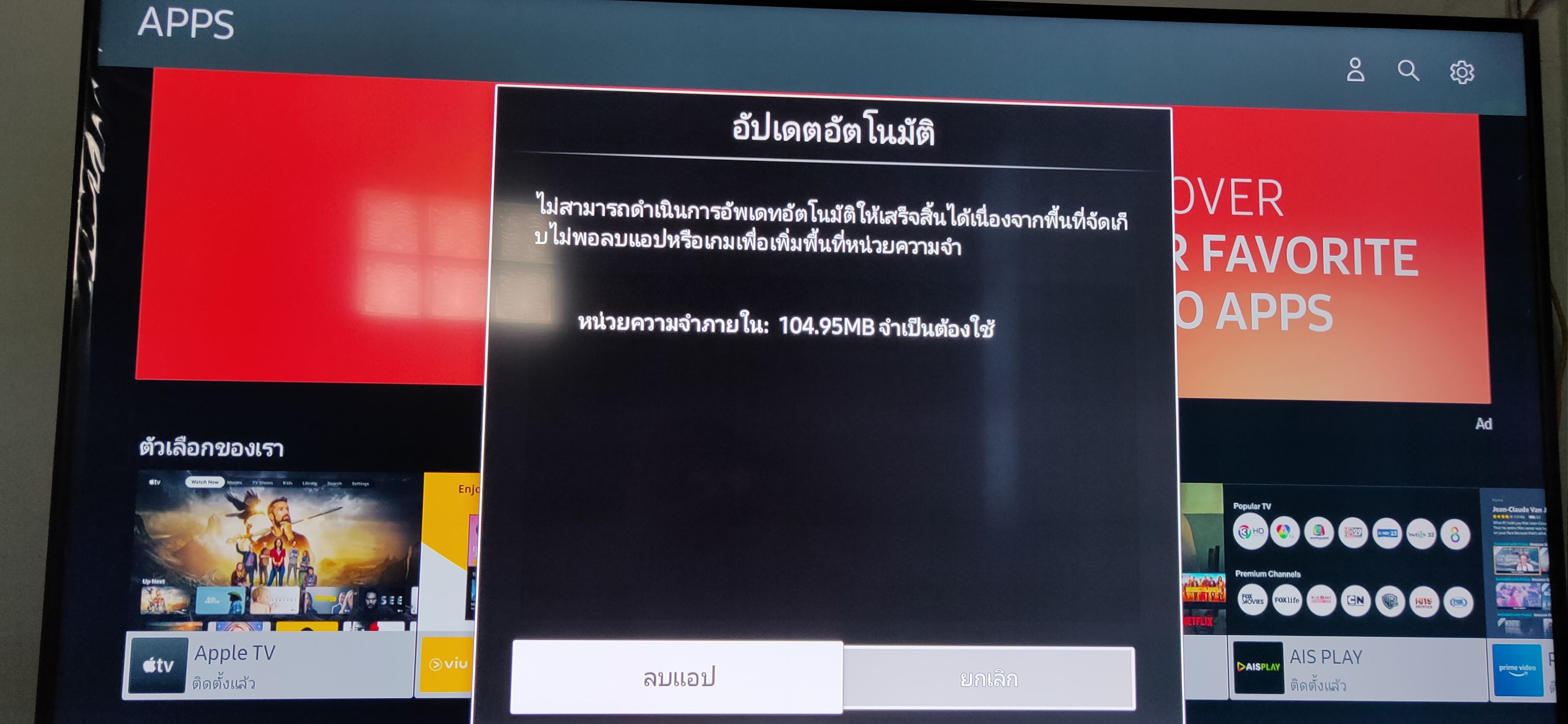 TV samsung รุ่น 55RU7400 ต้องการลบ App เพื่อเพิ่มพื้นที่ในการ Update